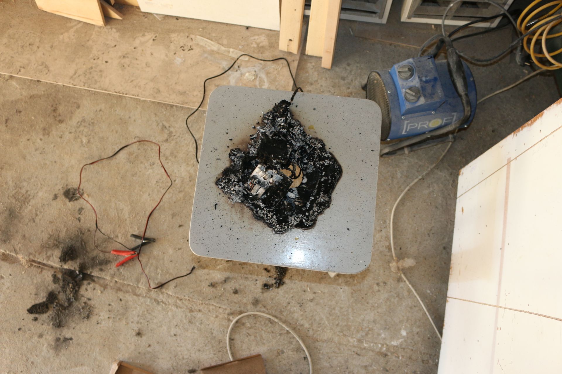 Teine põleng puhkes eramu garaažis, kus oli ärapõlenud aku laadimise ajal aku all olnud tool.